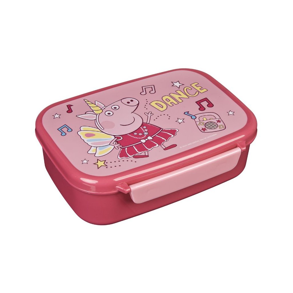 Plastová krabička na desiatu s motívom Peppa Pig, vo vnútri s rozdeľovacou prepážkou. Box nie je vhodný do umývačky ani mikrovlnnej rúry.