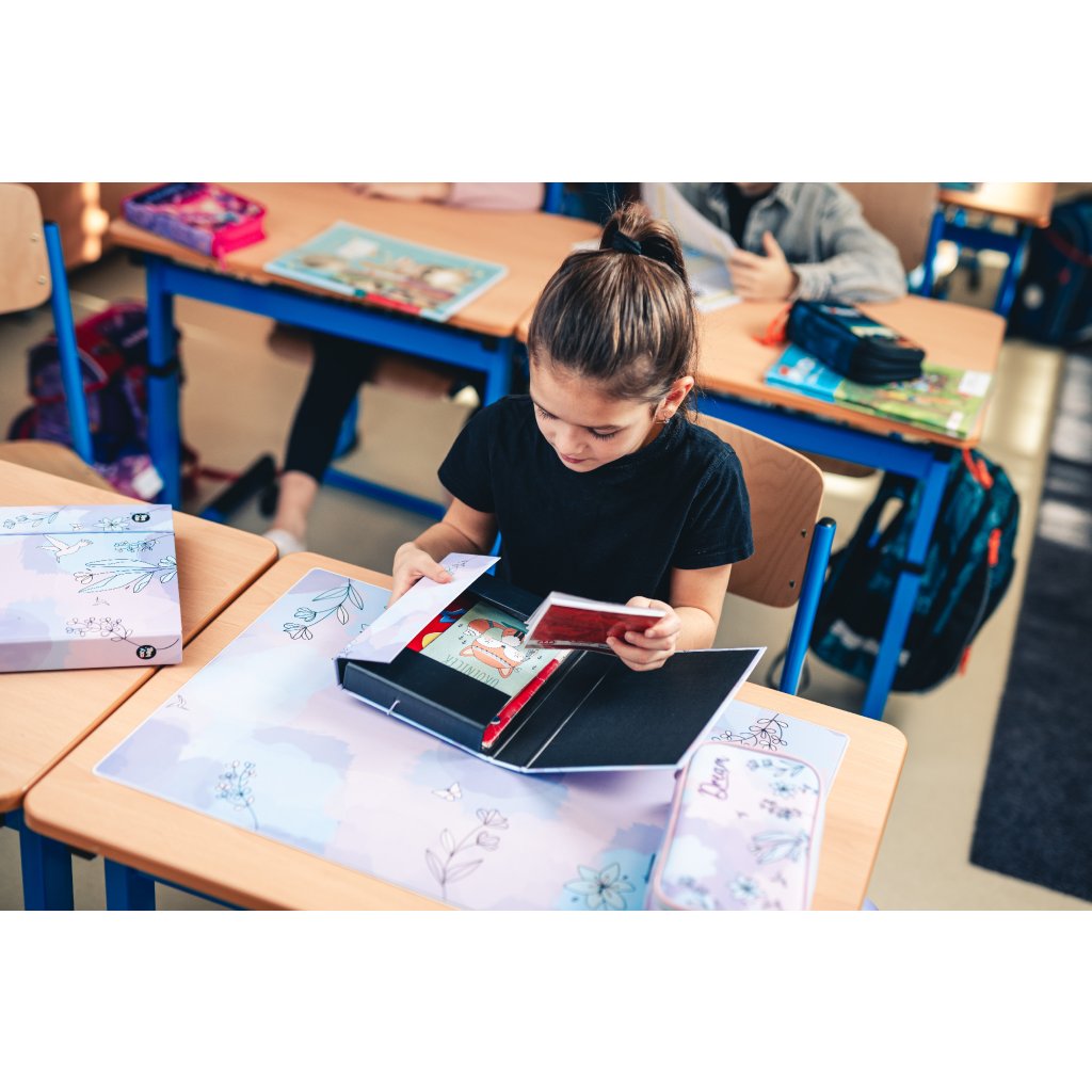 Obľúbený box na zošity z odolného laminátu, zatváranie na gumičku, vyrobené v Českej republike.