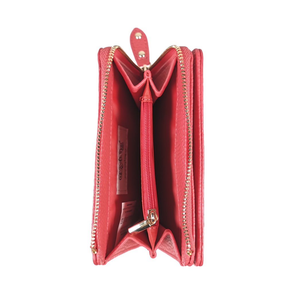Menšia dámska peňaženka z kolekcie Leather. Vnútri je 10 menších vreciek na vernostné karty, 1 väčšie vrecko, 1 oddelená priehradka na hotovosť a oddelené uzatvárateľné vrecko na zips na drobné mince.
