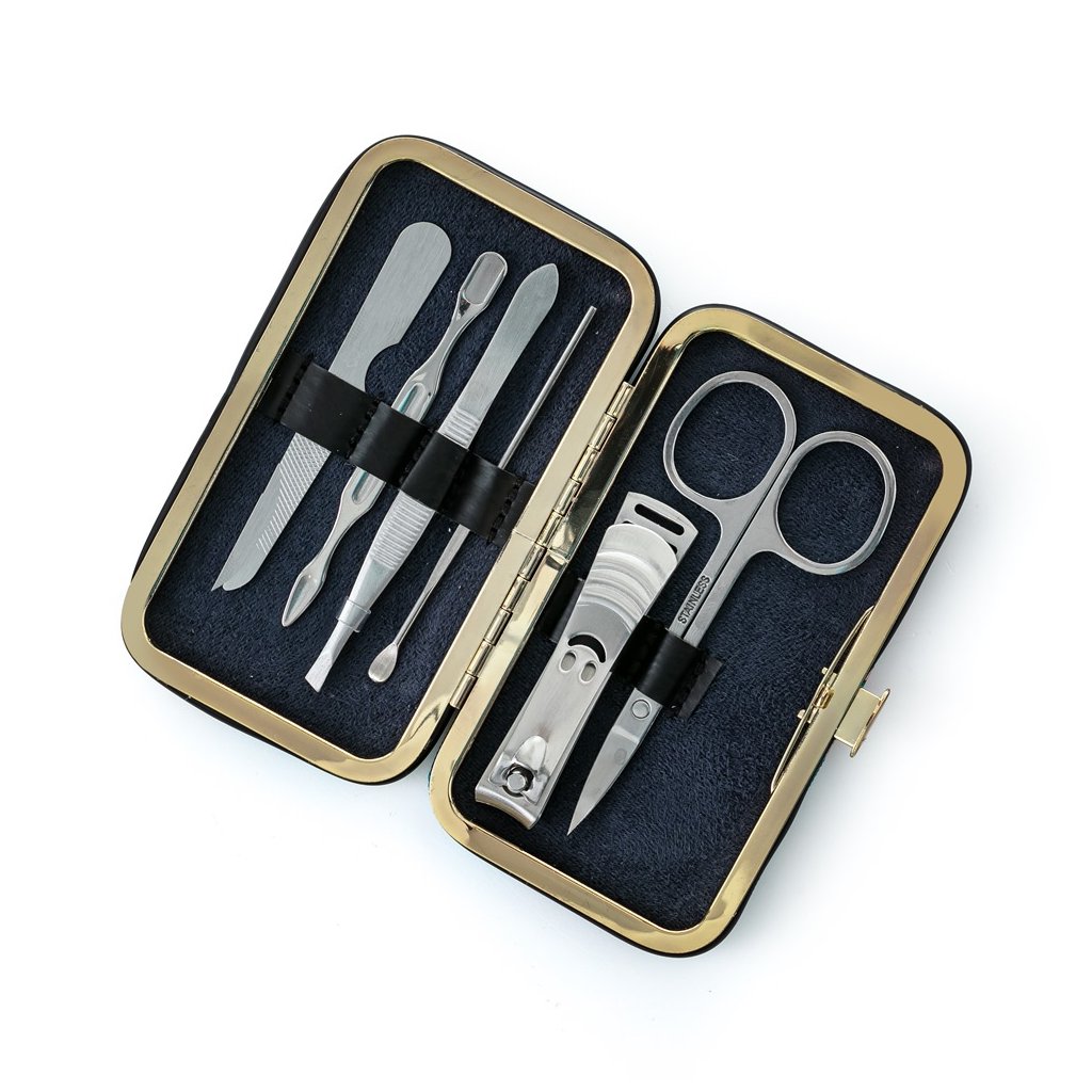 Darčeková sada obsahuje veľkú peňaženku, okrúhlu kozmetickú tašku, manikúrny set a zrkadielko.
