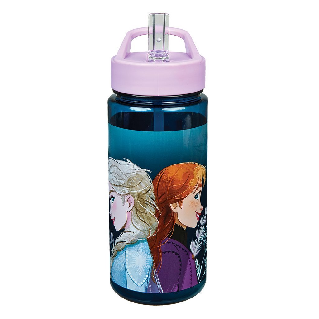 Plastová fľaša na pitie s motívom Frozen s integrovanou slamkou a odklápacím náustkom.