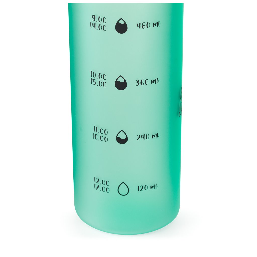 - Praktická fľaša s motivačnými časovými značkami pre dodržiavanie pitného režimu.