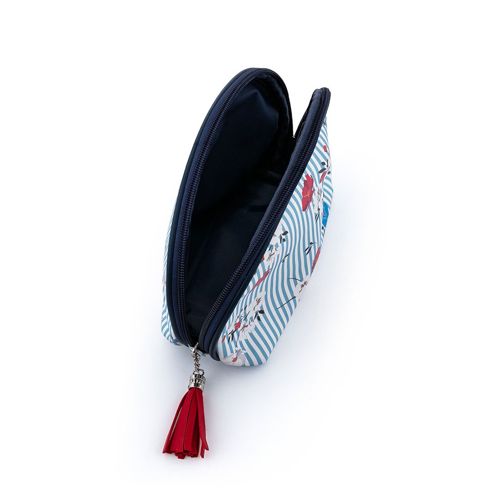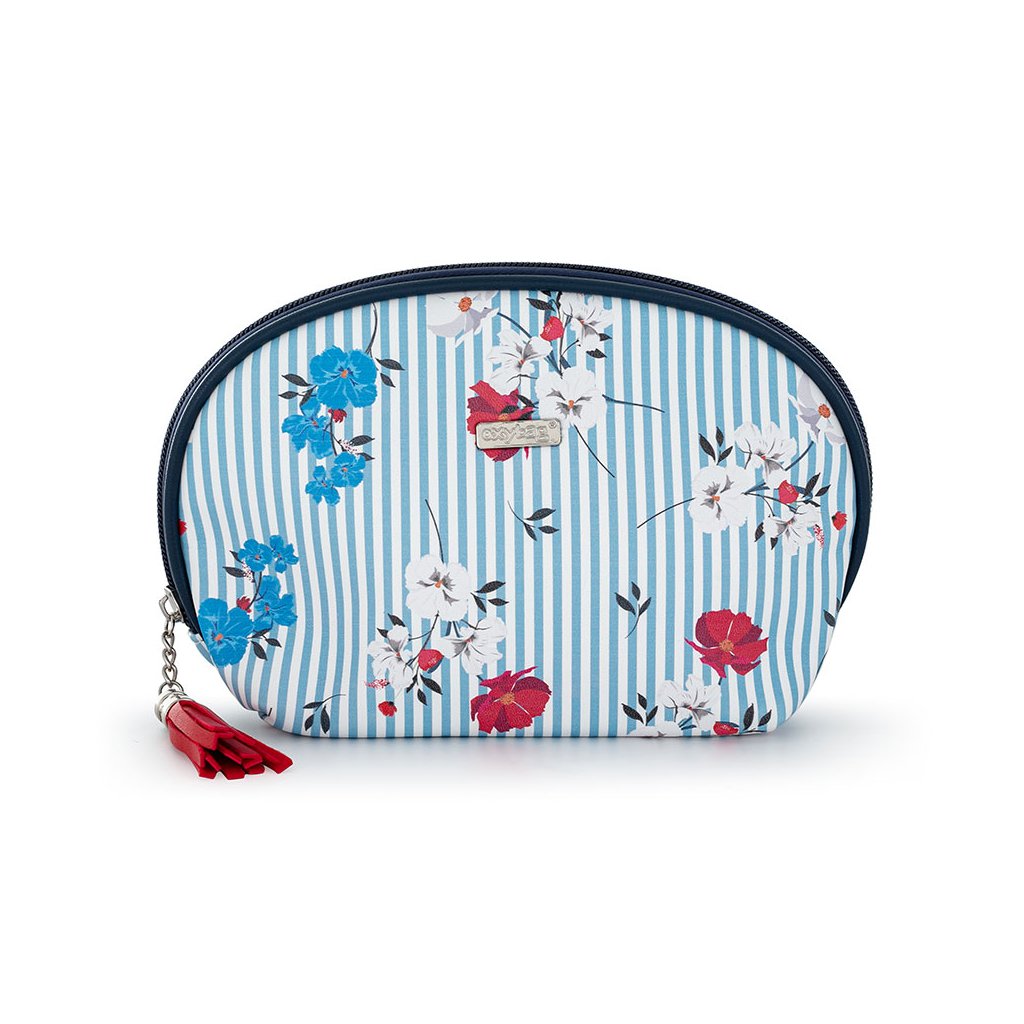 Cestovná guľatá kozmetická taška v kvetinovom prevedení. Vhodná na uskladnenie toaletných a kozmetických potrieb menšej veľkosti.