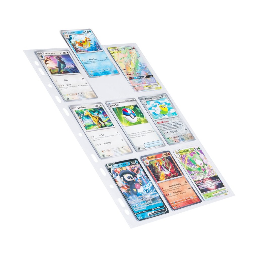 Kvalitné obaly na zberateľské karty s 9 vreckami (18 kariet obojstranne), hrúbka 80 mic, lesklý povrch.