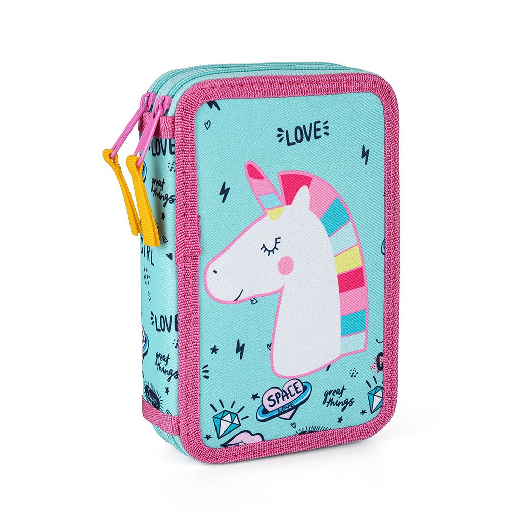 Dvojposchodové školské puzdro Unicorn iconic s gumenými úchytmi a štýlovým dizajnom, ktoré pojme množstvo písacích potrieb, udrží ich prehľadne uložené a stane sa nepostrádateľným spoločníkom každého školáka.