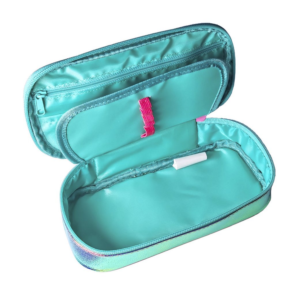 Hlavná komora je priestranná a pohodlne pojme perá, ceruzky, zvýrazňovače aj ďalšie školské potreby. Vrecko na zips je ideálne na menšie predmety, ktoré by sa mohli ľahko stratiť, napríklad guma, strúhadlo alebo kľúče. Stredná chlopňa s pevným pútkami po oboch stranách bezpečne drží všetky písacie potreby na svojom mieste. Pod chlopňou sa navyše nachádza dostatok priestoru na voľné uloženie ďalších školských potrieb alebo drobností, ktoré chcete mať poruke.