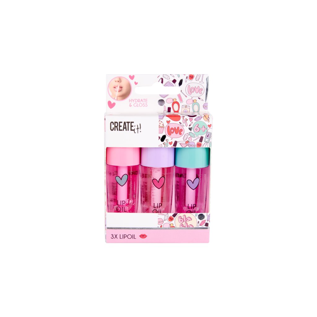 Objavte radosť z líčenia s touto farebnou sadou troch olejov na pery od značky Create It.