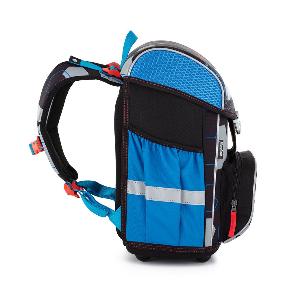 Pevné dno s nôžkami zabraňuje ako ušpineniu zvonku, tak pretečeniu čohokoľvek, čo sa vyleje vo vnútri. Na prednom diele nájdete praktické vrecko na desiatu a po stranách dve väčšie vrecká. Iste oceníte aj pracku pre bezpečné zatváranie a reflexné prvky. Vnútorné usporiadanie batohu zodpovedá presne potrebám prvákov a druhákov: do priestrannej hlavnej komory ľahko naukladáte všetky potrebné školské pomôcky, zmestí sa ich sem až 8 kg.
