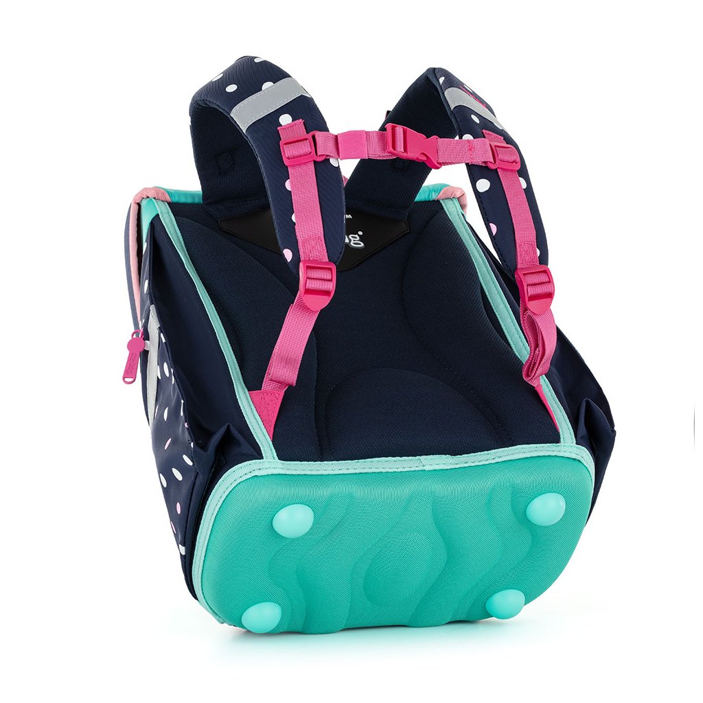 Polstrovanie je z príjemného priedušného materiálu, široké mäkčené popruhy sú navrhnuté tak, aby dokonale priľnuli a rovnomerne zaťažili ramená dieťaťa. Pre pohodlnejšie nosenie je batoh ďalej vybavený príťažnými a hrudnými popruhmi. Batohy ocenia predovšetkým tí najmladší školáci s výškou od 121 cm.