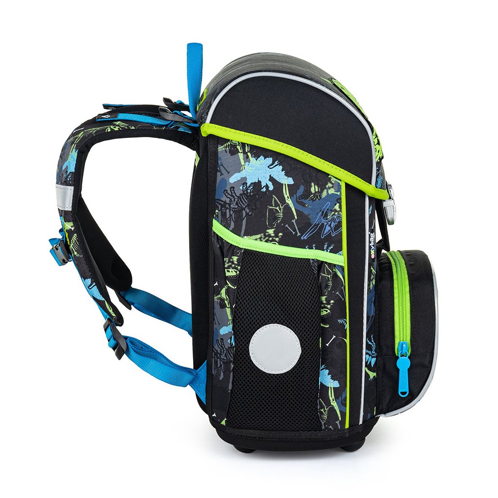 Pevné dno s nôžkami zabraňuje ako ušpineniu zvonku, tak pretečeniu čohokoľvek, čo sa vyleje vo vnútri. Na prednom diele nájdete praktické vrecko na desiatu a po stranách dve väčšie vrecká. Iste oceníte aj pracku pre bezpečné zatváranie a reflexné prvky.