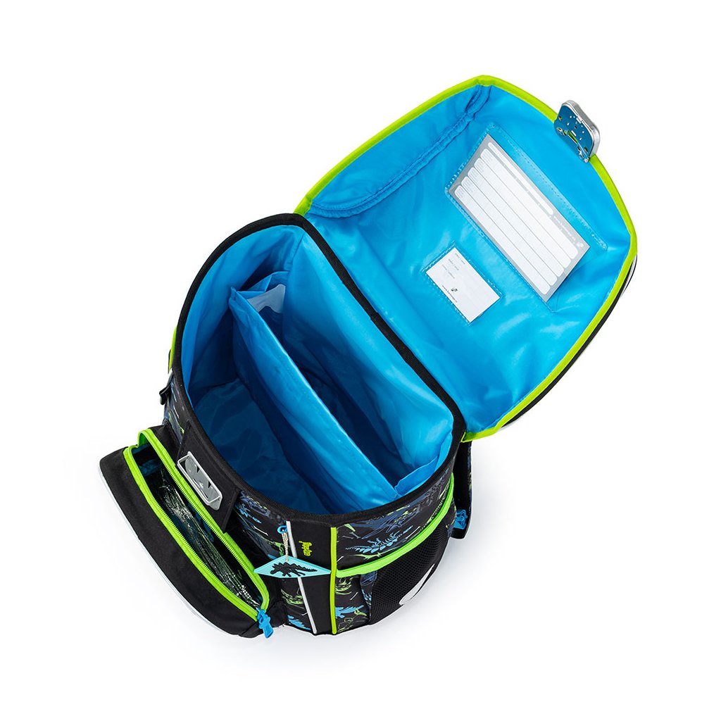 Vnútorné usporiadanie batohu zodpovedá presne potrebám prvákov a druhákov: do priestrannej hlavnej komory ľahko naukladáte všetky potrebné školské pomôcky, zmestí sa ich sem až 8 kg. Vhodné pre deti od 123 cm. Oddelená priehradka pomáha udržiavať poriadok a na spodnej strane veka si váš malý školák môže vypísať menovku alebo rozvrh hodín.
