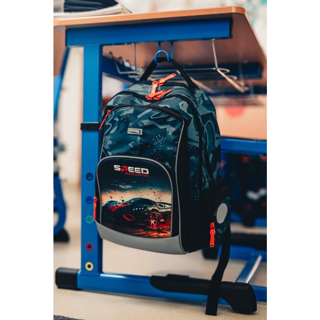 Školský batoh OXY GO upúta pozornosť svojím nápaditým dizajnom, ale vyznačuje sa aj ergonomickou dokonalosťou.