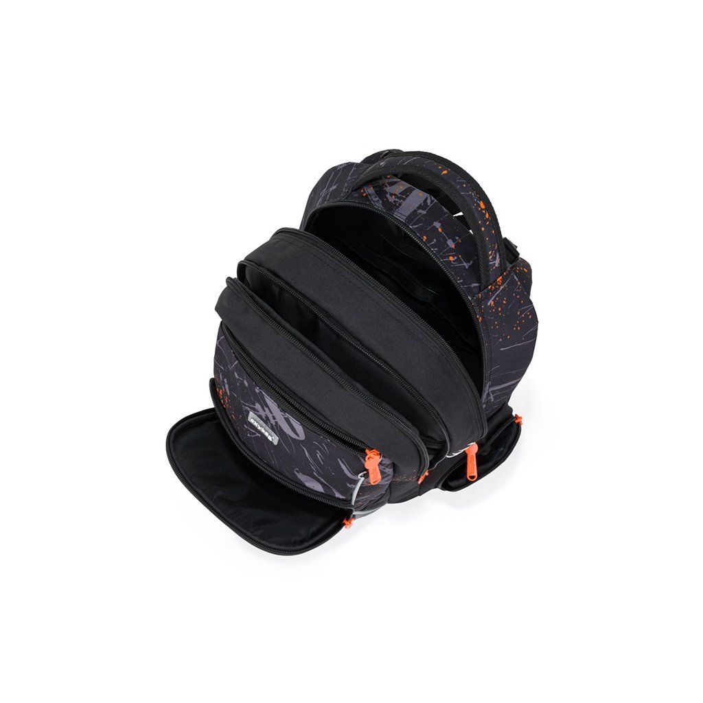 - Detaily, ktoré majú význam: Dve vnútorné komory poskytujú dostatok miesta pre učebnice, zošity a osobné veci na voľný čas. Odolné dno chráni obsah batohu pred znečistením zvonka a zabraňuje pretečenie tekutín vo vnútri. Po stranách sa nachádza otvorené vrecko na fľašu a malé vrecko na zips, ktoré vám umožní rýchly prístup k drobnostiam. Predné vrecko je vhodné na desiatový box a menšie vrecko na drobnosti, obidve vrecká sú na zips.