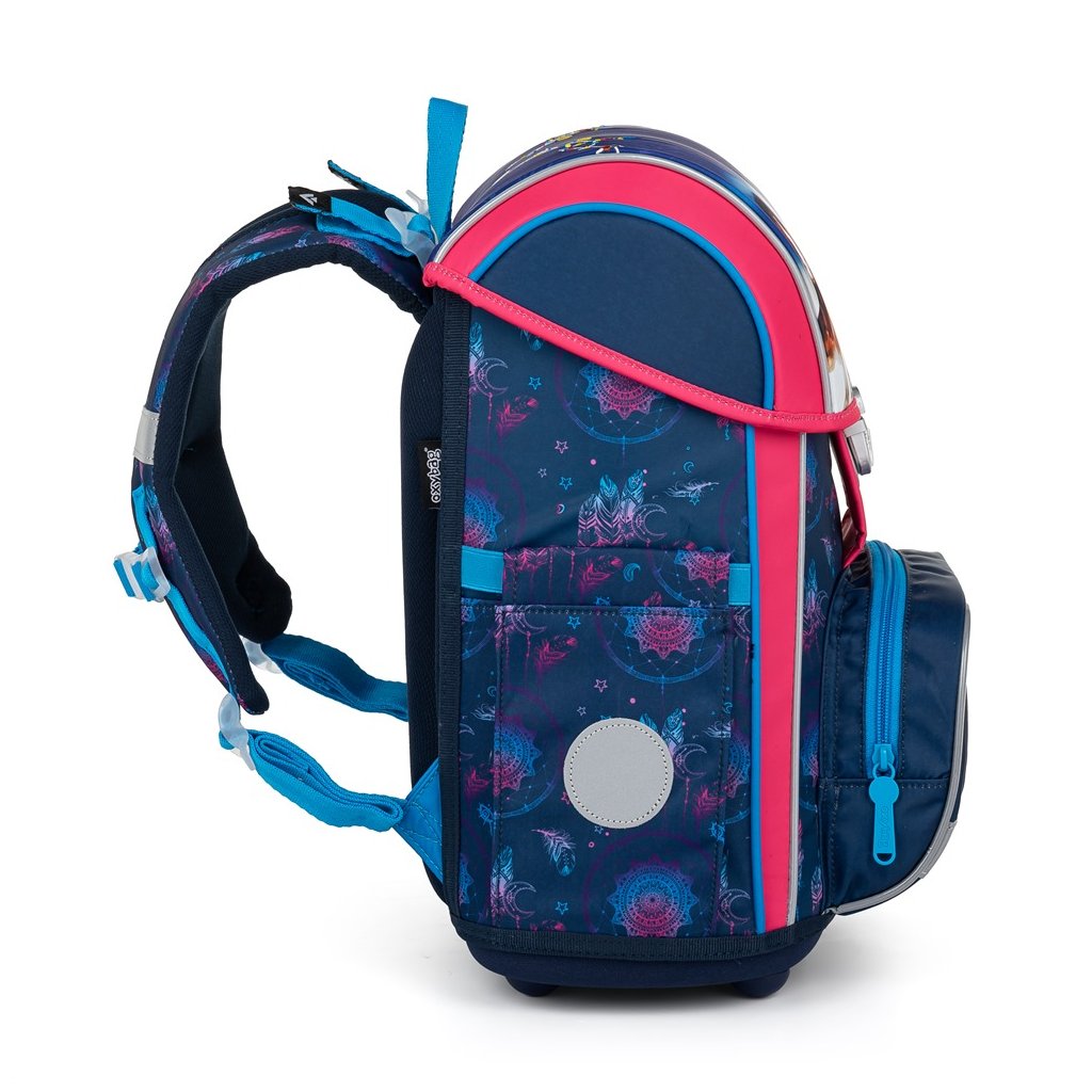 - Detaily, ktoré majú význam: Hlavná komora s rozraďovačom, menovkou a rozvrhom hodín pre lepšiu organizáciu. Nastaviteľné ramenné a hrudné popruhy pre optimálne prispôsobenie detskej postave. Pevné nepremokavé dno s nožičkami zaisťuje stabilitu a dostatok úložného priestoru. Predné vrecko je ideálne na desiatový box a bočné otvorené vrecká poskytujú dostatok miesta na všetky školské doplnky.