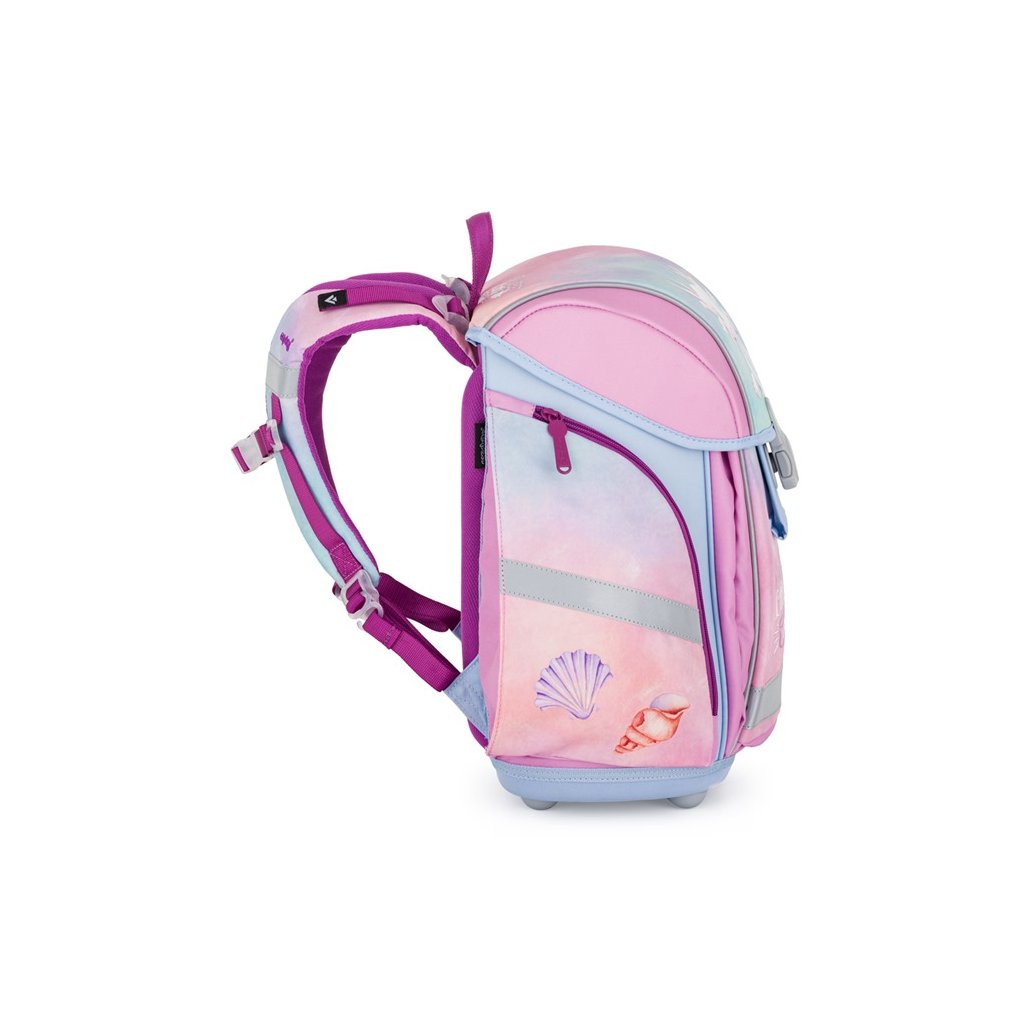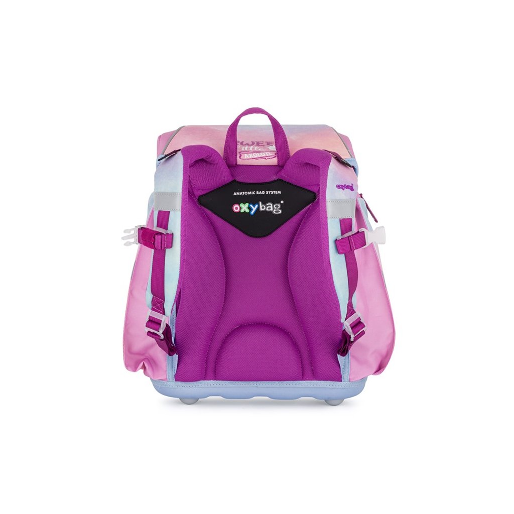 Vystužený chrbát a vnútorná výstuha pomáhajú udržiavať stály tvar aktovky a správne rozloženie hmotnosti. Nastaviteľné ramenné a hrudné popruhy umožňujú optimálne prispôsobenie detskej postave.