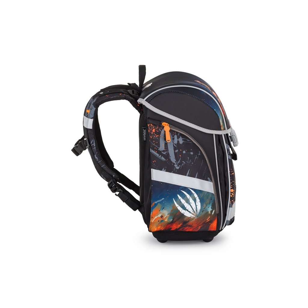 Vystužený chrbát a vnútorná výstuha pomáhajú udržiavať stály tvar aktovky a správne rozloženie hmotnosti. Nastaviteľné ramenné a hrudné popruhy umožňujú optimálne prispôsobenie detskej postave.