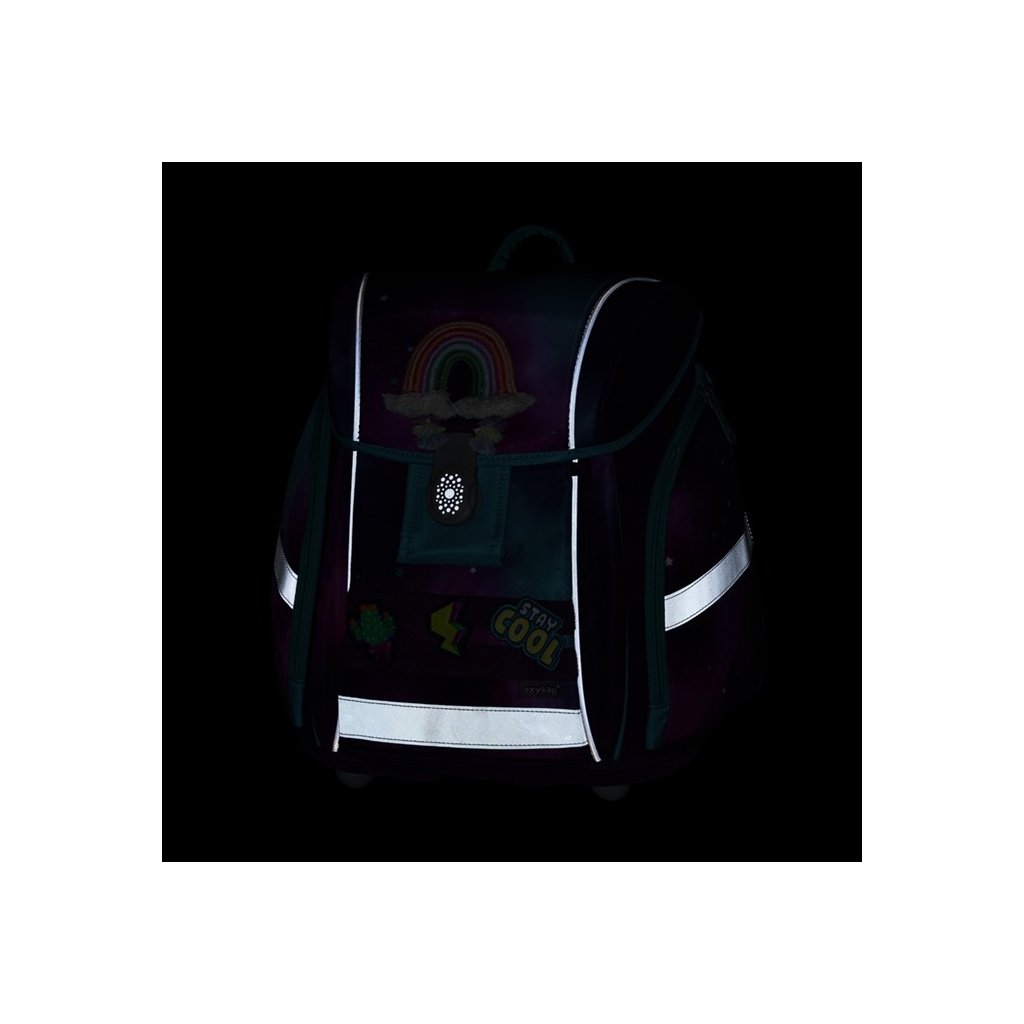 Hlavná komora s rozdeľovačom, menovkou a rozvrhom hodín uľahčuje organizáciu školských potrieb. Predné vrecko je ideálne na box na desiatu a bočné vrecká na zips poskytujú dostatok priestoru na ďalšie drobnosti. Pevné nepremokavé dno s nožičkami zabezpečuje stabilitu a ochranu obsahu.