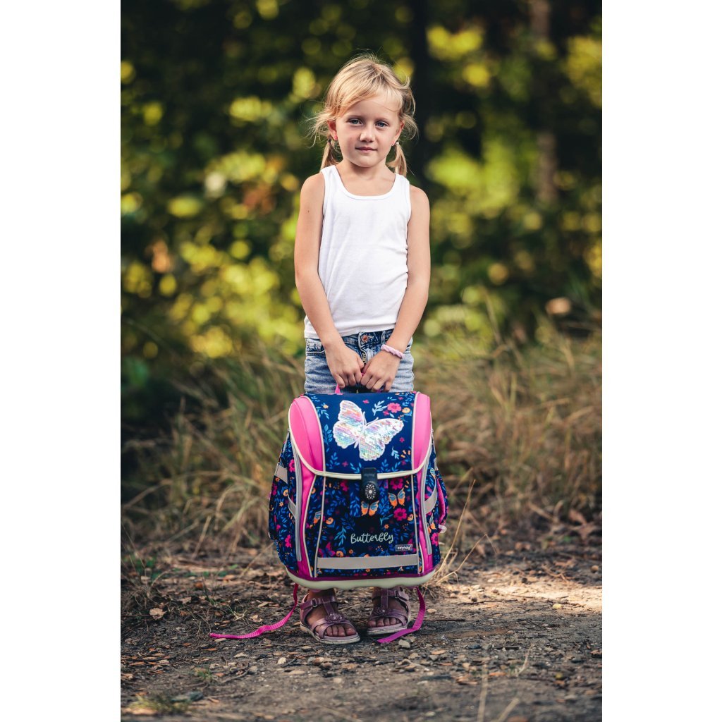 Školský set aktovky PREMIUM Light Motýľ s jednoposchodovým peračníkom a vreckom na prezuvky.