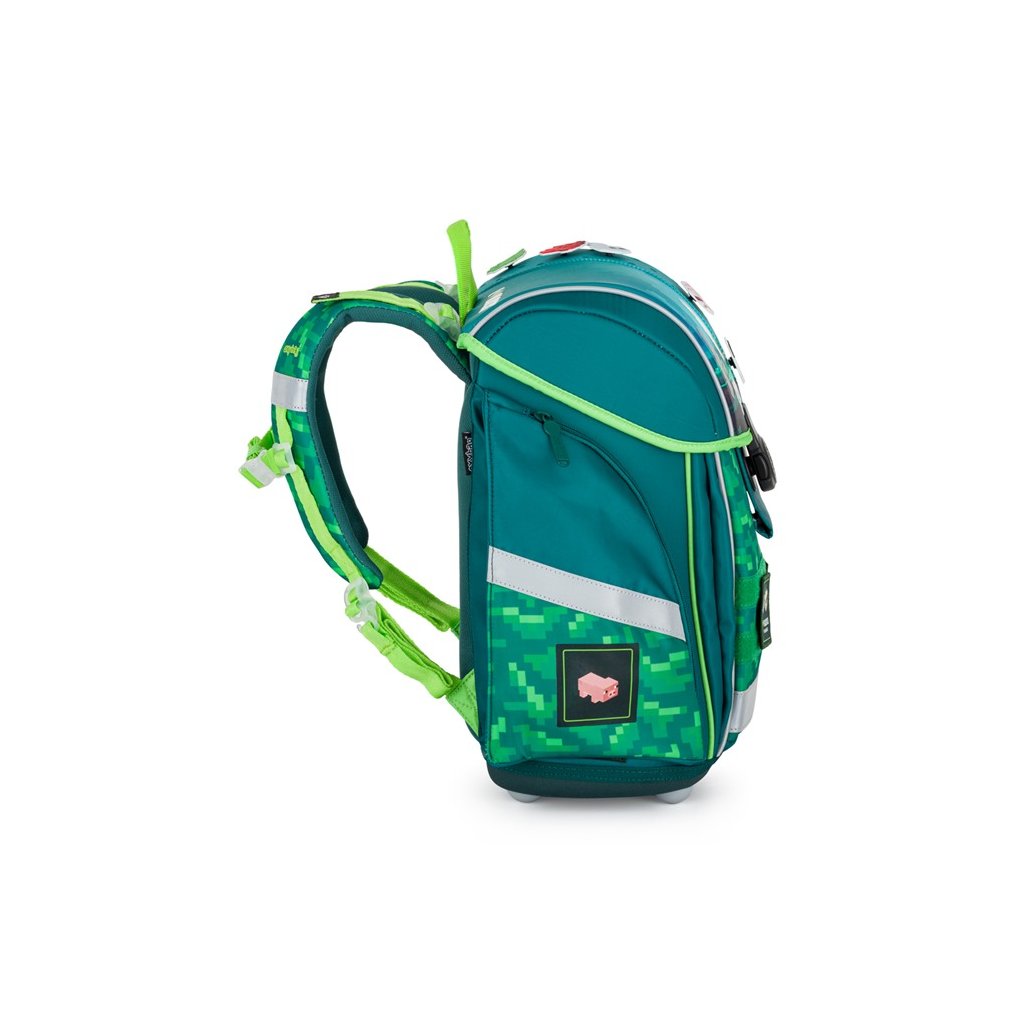 Vystužený chrbát a vnútorná výstuha pomáhajú udržiavať stály tvar aktovky a správne rozloženie hmotnosti. Nastaviteľné ramenné a hrudné popruhy umožňujú optimálne prispôsobenie detskej postave.