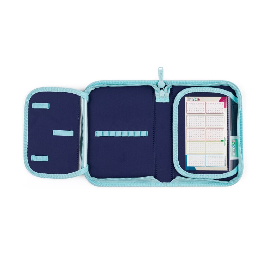Jednokomorový peračník s dvoma chlopňami a gumenými pútkami na uchytenie písacích potrieb. Na vnútornej chlopni sa nachádza priehľadná fólia pre jednoduchý prehľad rozvrhu hodín. Peračník je bez náplne, aby bol pripravený na obľúbené písacie potreby vašich malých školákov.
