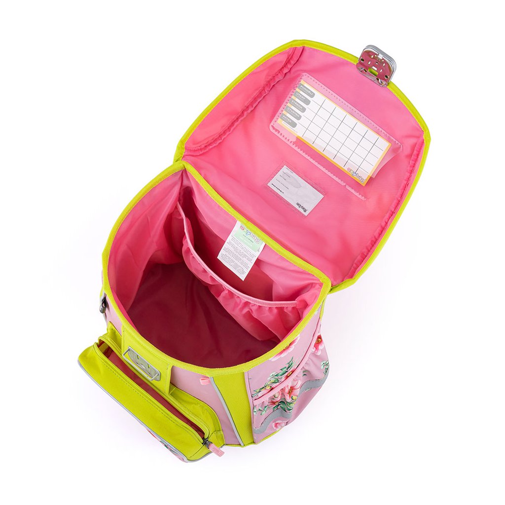 Vnútorné usporiadanie batohu presne odpovedá potrebám prvákov a druhákov: do priestornej hlavnej komory ľahko uložíte všetky potrebné školské pomôcky, vojde sa ich sem až 8 kg. Oddelená priehradka pomáha udržiavať poriadok a na spodnej strane veka si váš malý školák môže vypísať menovku alebo rozvrh hodín.