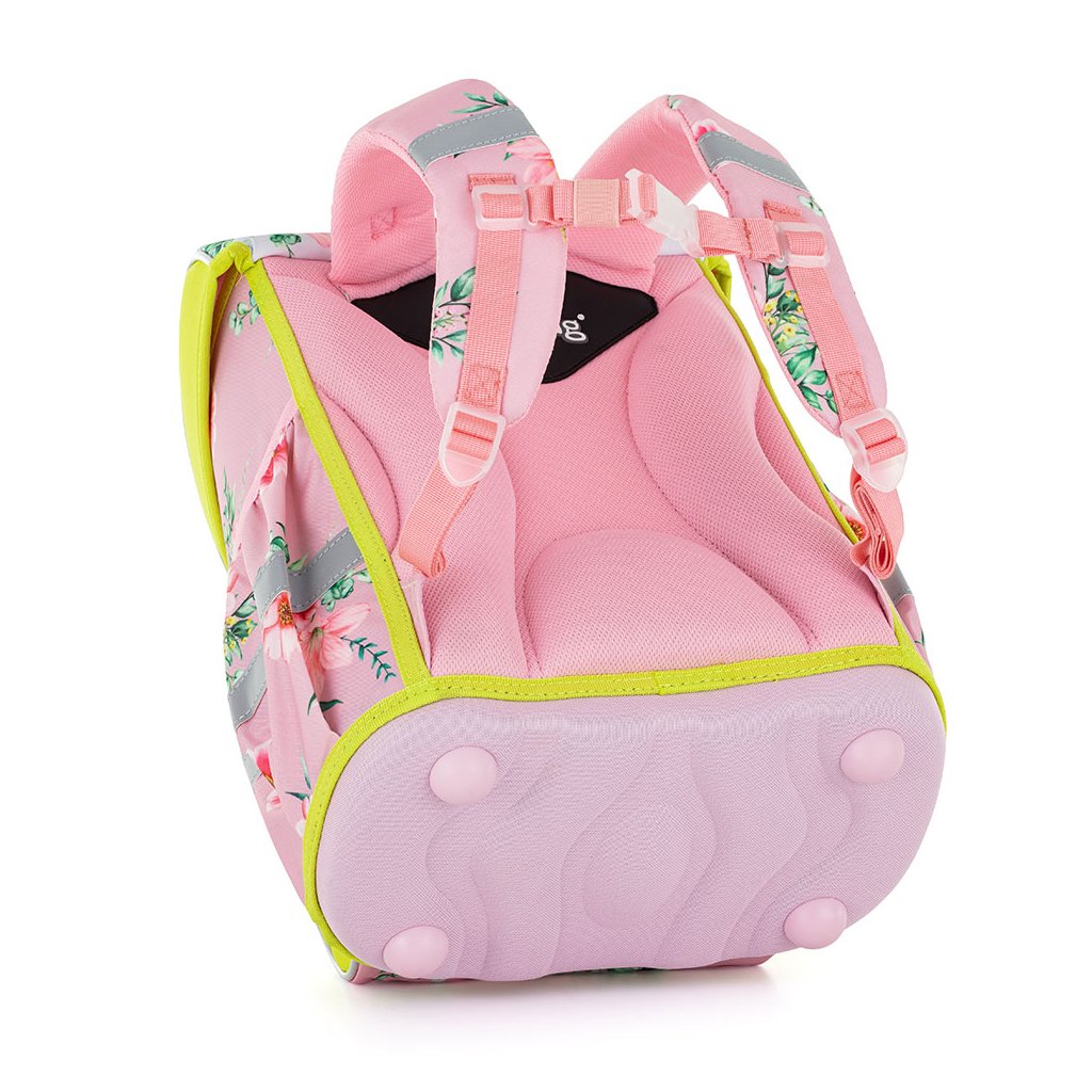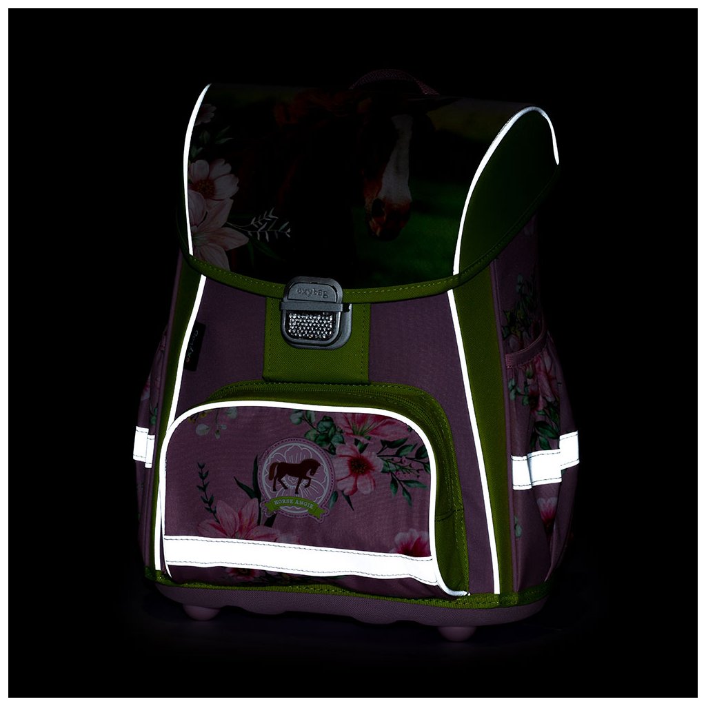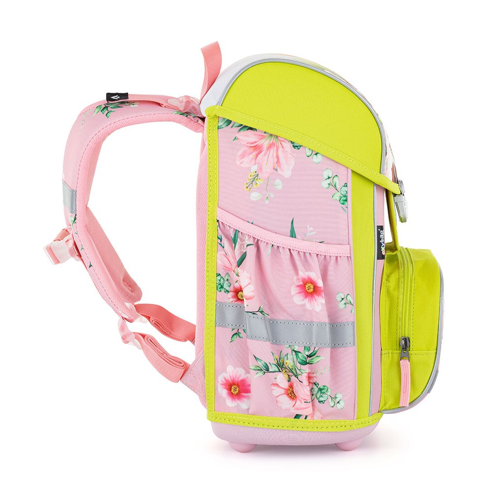 Pevné dno s nožičkami zabraňuje ako ušpineniu zvonku, tak pretečeniu čohokoľvek, čo sa vyleje vo vnútri. Na prednom diele nájdete praktickú kapsu na svačinu a po stranách dve väčšie kapsy na zips. Určite oceníte tiež pracku pre bezpečné zatváranie a reflexné prvky.