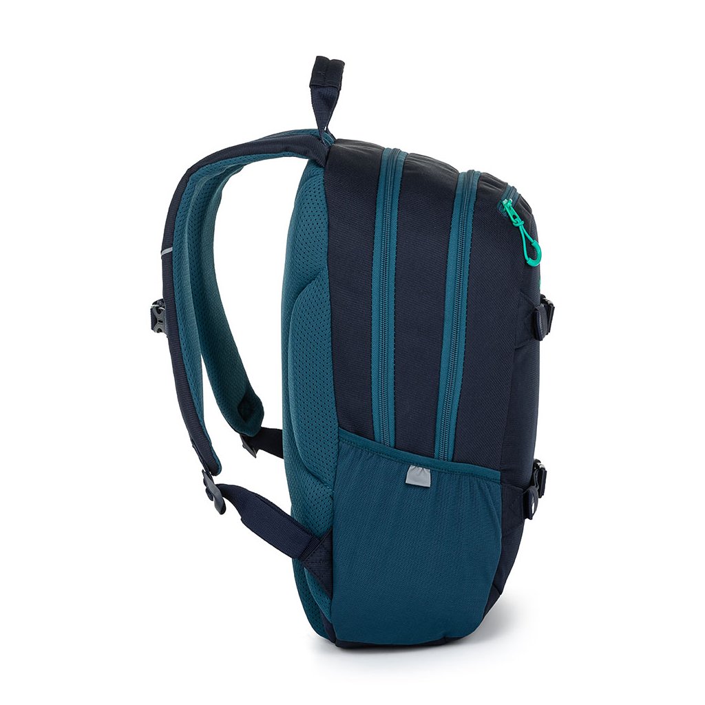 Získa si vás hneď z niekoľkých dôvodov: ergonomicky tvarovaný chrbtový systém zaistí pohodlie každému chrbtu. Nosenie spríjemňujú polstrované ramenné popruhy a hrudný popruh, ktoré je možné ľubovoľne nastaviť. Hlavné vrecká uzatvárajú pevné zipsy s farebnými pútkami.