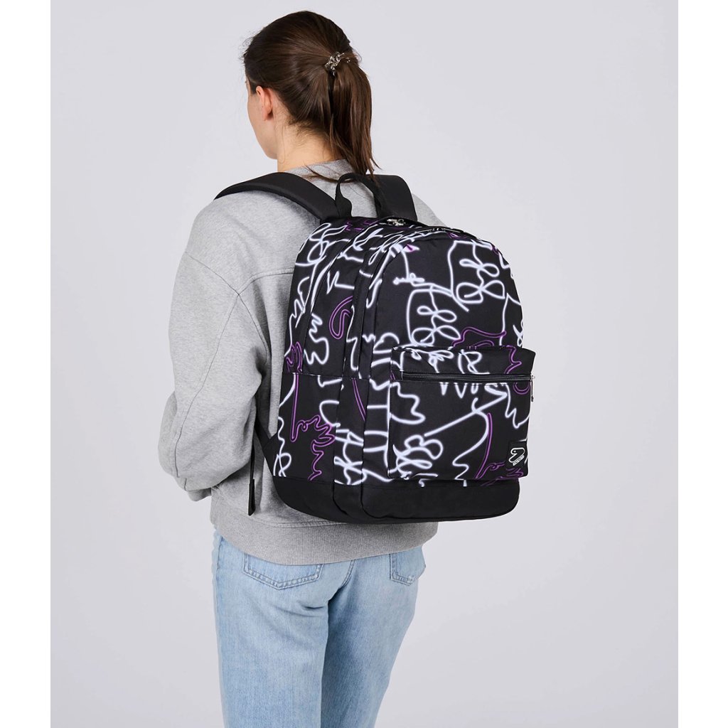 V dvojkomorovom batohu Pro XXL Seven The Double JET BLACK je miesto na všetko, čo potrebujete. Je vybavený bezdrôtovými LED slúchadlami a má vyhradený priestor na váš počítač a fľašu s vodou. Batoh Pro XXL sa pohodlne nosí na ramenách vďaka vopred tvarovanému EVA chrbtu a polstrovaným a priedušným ramenným popruhom. Je vyrobený zo 100 % recyklovanej polyesterovej tkaniny s certifikáciou GRS, z 27 PET fliaš, čo zaručuje všetky štandardy kvality našich materiálov.